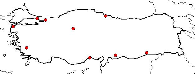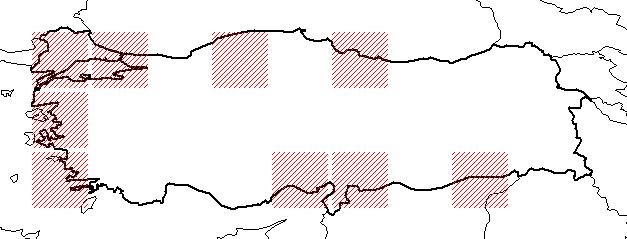 Türkiye dağılımı : Trakya, B., G. ve GD. Anadolu