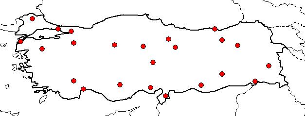 | Based on Vilayets: | ADANA, İSTANBUL, ŞIRNAK, ANKARA, ANTALYA, BALIKESİR, BİLECİK, BURDUR, ÇANAKKALE, DİYARBAKIR, ERZURUM, HATAY, KAYSERİ, KIRKLARELİ, KOCAELİ, SİVAS, TOKAT, TRABZON, ŞANLIURFA, VAN, YOZGAT, BAYBURT, KARAMAN|