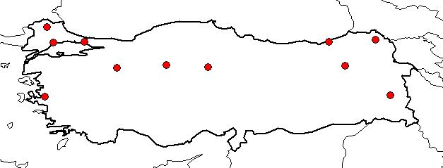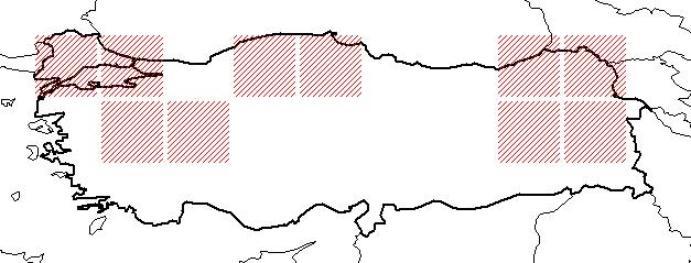 Türkiye dağılımı : Trakya, KB. ve Karasal Anadolu