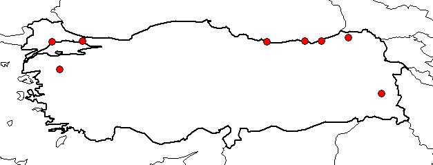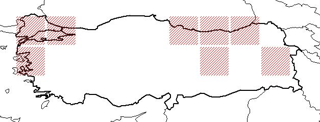 Türkiye dağılımı : Trakya, KB. ve D. Anadolu