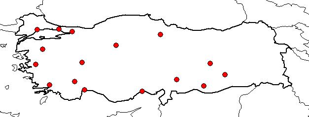 | Based on Vilayets: | İSTANBUL, AFYONKARAHİSAR, AMASYA, ANKARA, ANTALYA, BALIKESİR, BURDUR, DİYARBAKIR, ELAZIĞ, İÇEL, KOCAELİ, MANİSA, KAHRAMANMARAŞ, MUĞLA, TEKİRDAĞ, ŞANLIURFA|