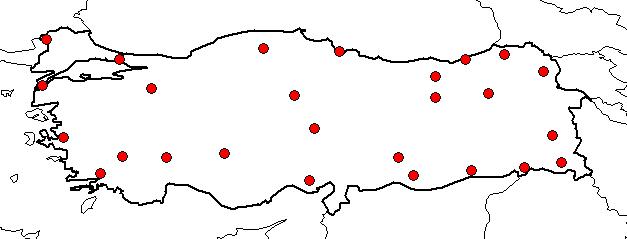 | Based on Vilayets: | ADANA, İSTANBUL, KARS, HAKKARİ, MARDİN, ŞIRNAK, KASTAMONU, ADIYAMAN, AĞRI, ARTVİN, BİLECİK, ÇANAKKALE, DENİZLİ, EDİRNE, ERZİNCAN, ERZURUM, GÜMÜŞHANE, ISPARTA, İZMİR, KAYSERİ, KONYA, MUĞLA, RİZE, SAMSUN, ŞANLIURFA, VAN, YOZGAT|