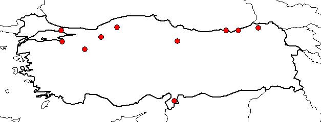 Türkiye dağılımı : K. ve KB. Türkiye, G. Anadolu (Amanoslar)