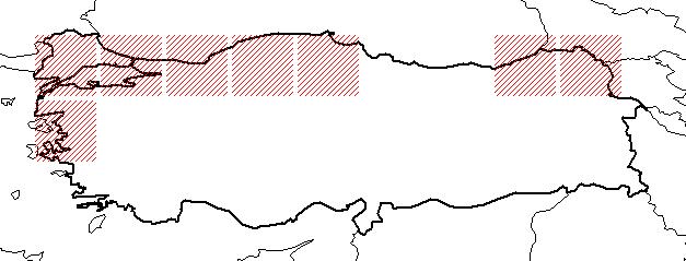 Türkiye dağılımı : KB. Türkiye, ve K. Anadolu