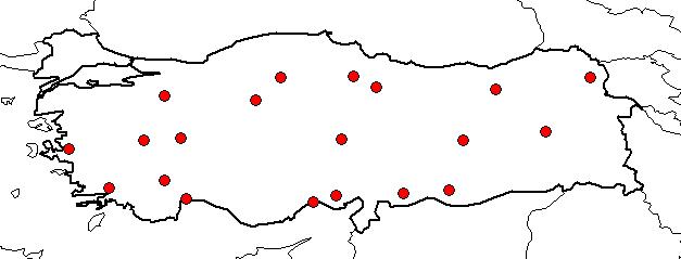 | Based on Vilayets: | ADANA, GAZİANTEP, KARS, ÇANKIRI, AFYONKARAHİSAR, AĞRI, AMASYA, ANKARA, ANTALYA, BİLECİK, BURDUR, ELAZIĞ, İÇEL, İZMİR, KAYSERİ, MUĞLA, MUŞ, TOKAT, ŞANLIURFA, UŞAK, BAYBURT|