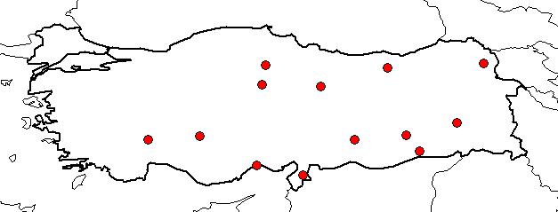 | Based on Vilayets: | KARS, MARDİN, BİTLİS, ADIYAMAN, ÇORUM, DİYARBAKIR, GÜMÜŞHANE, HATAY, ISPARTA, İÇEL, KONYA, SİVAS, YOZGAT| Taksonun kare düzeyinde dağılımı bulunamadı.