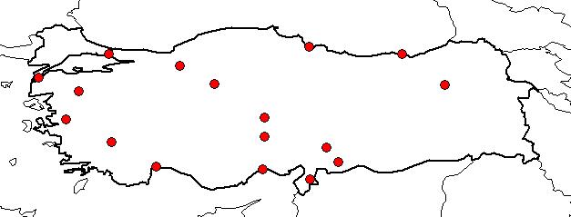 | Based on Vilayets: | BOLU, GAZİANTEP, İSTANBUL, ANKARA, ANTALYA, BALIKESİR, ÇANAKKALE, DENİZLİ, ERZURUM, HATAY, İÇEL, MANİSA, KAHRAMANMARAŞ, NEVŞEHİR, NİĞDE, SAMSUN, TRABZON|