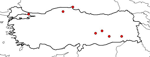 Türkiye dağılımı : Trakya, KD. ve D. Anadolu