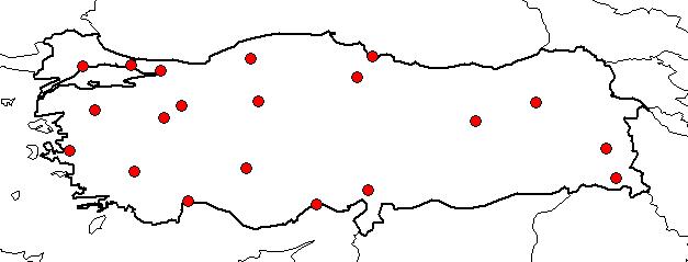 | Based on Vilayets: | OSMANİYE, İSTANBUL, HAKKARİ, KARABÜK, AMASYA, ANKARA, ANTALYA, BALIKESİR, DENİZLİ, ERZURUM, ESKİŞEHİR, İÇEL, İZMİR, KOCAELİ, KONYA, KÜTAHYA, SAMSUN, TEKİRDAĞ, TUNCELİ, VAN|