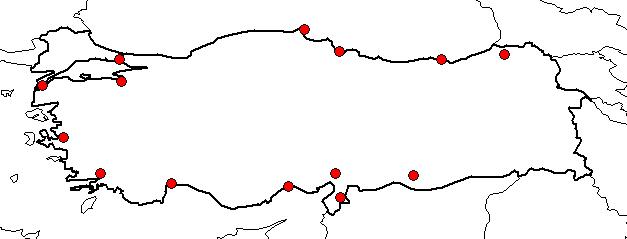 | Based on Vilayets: | OSMANİYE, İSTANBUL, ANTALYA, ARTVİN, BURSA, ÇANAKKALE, HATAY, İÇEL, İZMİR, MUĞLA, SAMSUN, SİNOP, TRABZON, ŞANLIURFA|