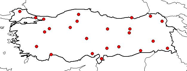 | Based on Vilayets: | ADANA, İSTANBUL, KARS, HAKKARİ, MARDİN, ÇANKIRI, KASTAMONU, BİTLİS, ADIYAMAN, ANKARA, ANTALYA, ARTVİN, DENİZLİ, ERZİNCAN, ESKİŞEHİR, HATAY, KIRKLARELİ, KOCAELİ, KÜTAHYA, KAHRAMANMARAŞ, NEVŞEHİR, SİVAS, TRABZON, TUNCELİ|