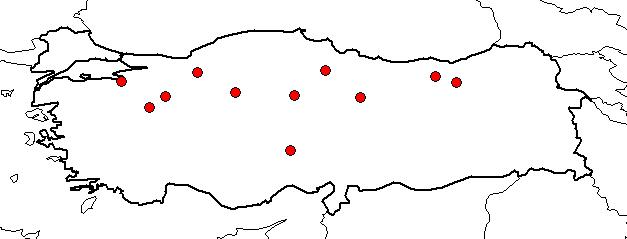 Türkiye dağılımı : K., B., O. ve D. Anadolu