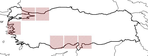 Türkiye dağılımı : 38 Derece D.nun Batısı, K., B., G. ve O. Anadolu