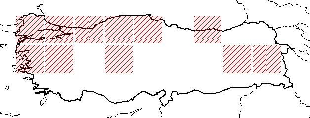 Türkiye dağılımı : B., K., O. ve D. Anadolu