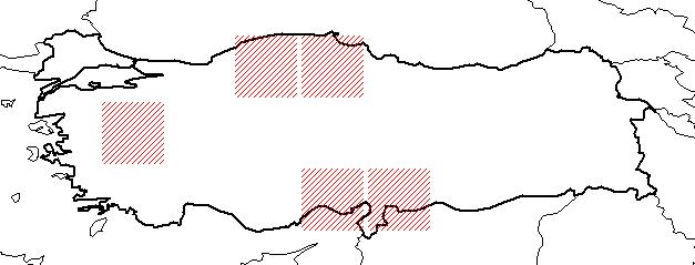 Türkiye dağılımı : 37 Derece D.nun Batısı, Trakya, KB., B., OB. ve G. Anadolu