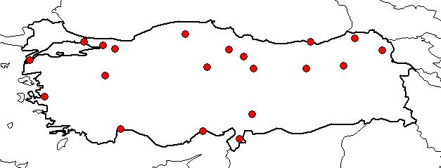 Türkiye dağılımı : B., O., D. ve G. Anadolu