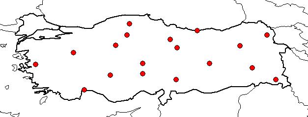 | Based on Vilayets: | KARS, HAKKARİ, ÇANKIRI, KASTAMONU, BİTLİS, ANKARA, ANTALYA, ELAZIĞ, ERZURUM, GİRESUN, KONYA, KÜTAHYA, MANİSA, KAHRAMANMARAŞ, NEVŞEHİR, NİĞDE, SİVAS, TOKAT|