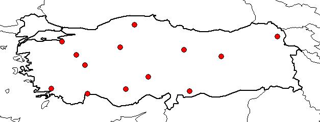 | Based on Vilayets: | GAZİANTEP, KARS, KASTAMONU, AFYONKARAHİSAR, ANKARA, ANTALYA, BURSA, KÜTAHYA, MUĞLA, NİĞDE, SİVAS, TUNCELİ, KARAMAN|