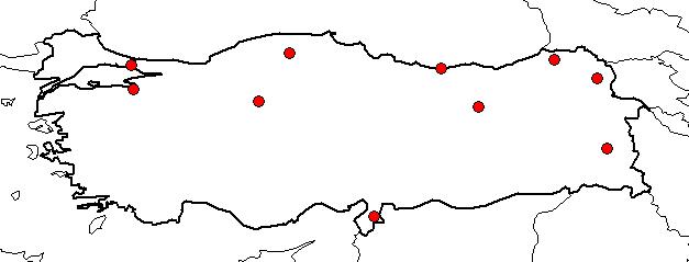 Türkiye dağılımı : B., O., K., D. ve G. Anadolu