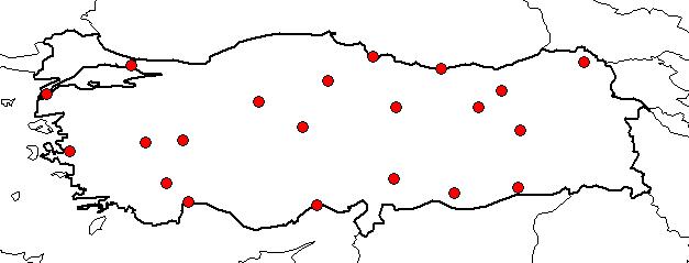 | Based on Vilayets: | İSTANBUL, ARDAHAN, MARDİN, AFYONKARAHİSAR, ANKARA, ANTALYA, BİNGÖL, BURDUR, ÇANAKKALE, ÇORUM, ERZİNCAN, GİRESUN, İÇEL, İZMİR, KIRŞEHİR, KAHRAMANMARAŞ, SAMSUN, SİVAS, ŞANLIURFA, UŞAK, BAYBURT|