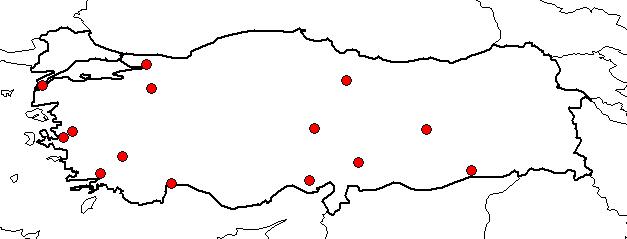 Türkiye dağılımı : B., O., D., G. ve GD. Anadolu