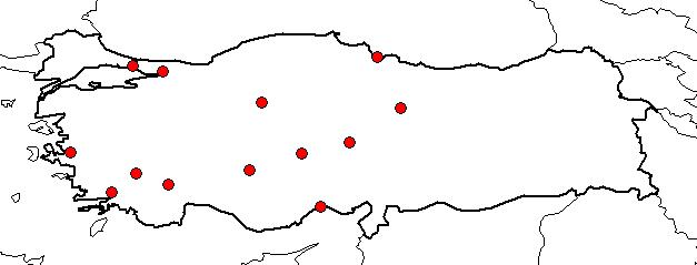 | Based on Vilayets: | İSTANBUL, ANKARA, BURDUR, DENİZLİ, İÇEL, İZMİR, KAYSERİ, KOCAELİ, KONYA, MUĞLA, SAMSUN, SİVAS, AKSARAY|