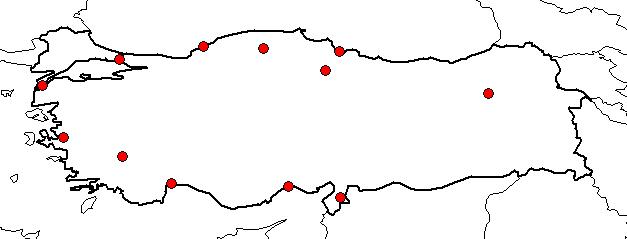 | Based on Vilayets: | İSTANBUL, ZONGULDAK, KASTAMONU, AMASYA, ANTALYA, ÇANAKKALE, DENİZLİ, ERZURUM, HATAY, İÇEL, İZMİR, SAMSUN|