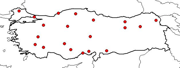 | Based on Vilayets: | ADANA, GAZİANTEP, İSTANBUL, KARS, ZONGULDAK, KASTAMONU, AMASYA, ANKARA, BİLECİK, BURDUR, DENİZLİ, ERZİNCAN, ERZURUM, GÜMÜŞHANE, İÇEL, KAYSERİ, KIRKLARELİ, KONYA, UŞAK, KARAMAN|