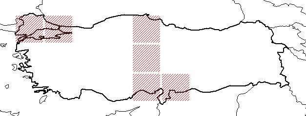 Türkiye dağılımı : B., O., G., K. ve GD. Anadolu