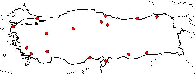 Türkiye dağılımı : B., K., G., O. ve GD. Anadolu