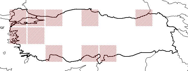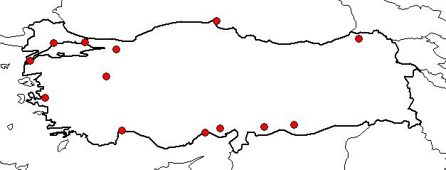 Türkiye dağılımı : B., K., G. ve GD. Anadolu