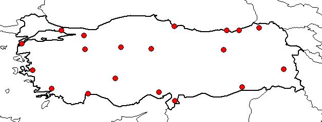 | Based on Vilayets: | ADANA, İSTANBUL, MARDİN, ANKARA, ANTALYA, ARTVİN, ÇANAKKALE, ERZİNCAN, ESKİŞEHİR, HATAY, İZMİR, KONYA, MUĞLA, RİZE, SAKARYA, SAMSUN, TRABZON, VAN, YOZGAT|