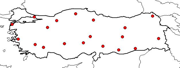 | Based on Vilayets: | BOLU, İSTANBUL, ARDAHAN, MARDİN, KASTAMONU, AMASYA, BURDUR, ÇANAKKALE, DENİZLİ, ELAZIĞ, ERZİNCAN, ESKİŞEHİR, İZMİR, KAYSERİ, KONYA, KAHRAMANMARAŞ, NİĞDE, ŞANLIURFA, VAN|
