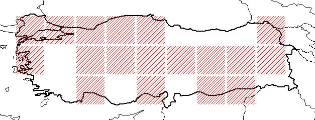 Türkiye dağılımı : B., K., O., G., D. ve GD. Anadolu