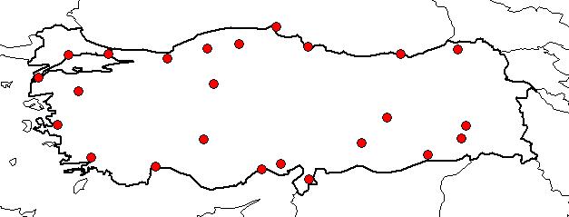 | Based on Vilayets: | ADANA, DÜZCE, İSTANBUL, MARDİN, SİİRT, KARABÜK, KASTAMONU, BİTLİS, ADIYAMAN, ANKARA, ANTALYA, ARTVİN, BALIKESİR, ÇANAKKALE, ELAZIĞ, HATAY, İÇEL, İZMİR, KONYA, MUĞLA, SAMSUN, SİNOP, TEKİRDAĞ, TRABZON|