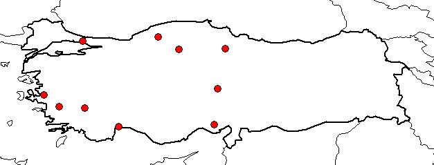 Türkiye dağılımı : K., O., B. ve G. Anadolu