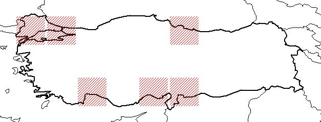 Türkiye dağılımı : Trakya, Dış Anadolu