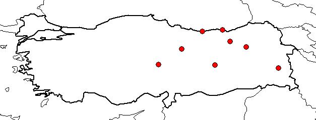 Türkiye dağılımı : KD., O. ve D. Anadolu