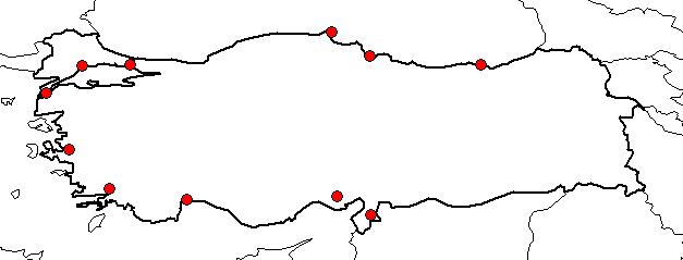| Based on Vilayets: | ADANA, İSTANBUL, ANTALYA, ÇANAKKALE, HATAY, İZMİR, MUĞLA, SAMSUN, SİNOP, TEKİRDAĞ, TRABZON|