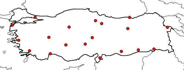 | Based on Vilayets: | İSTANBUL, IĞDIR, MARDİN, ŞIRNAK, AFYONKARAHİSAR, AMASYA, ANKARA, ANTALYA, ÇANAKKALE, ERZİNCAN, HATAY, İZMİR, KAYSERİ, KONYA, MUĞLA, NİĞDE, TOKAT, TRABZON, ŞANLIURFA|
