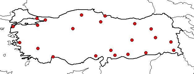 | Based on Vilayets: | ADANA, GAZİANTEP, İSTANBUL, HAKKARİ, MARDİN, KASTAMONU, AMASYA, ANKARA, ANTALYA, BURSA, ÇANAKKALE, DENİZLİ, ELAZIĞ, ERZURUM, GÜMÜŞHANE, İZMİR, KOCAELİ, KAHRAMANMARAŞ, MUŞ, SAMSUN, ŞANLIURFA, VAN|