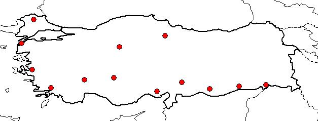 | Based on Vilayets: | ADANA, MARDİN, ŞIRNAK, AMASYA, ANKARA, ÇANAKKALE, ISPARTA, İZMİR, KIRKLARELİ, KONYA, KAHRAMANMARAŞ, MUĞLA, ŞANLIURFA|