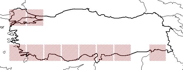 Türkiye dağılımı : Trakya, Dış ve D. (G. uç) Anadolu