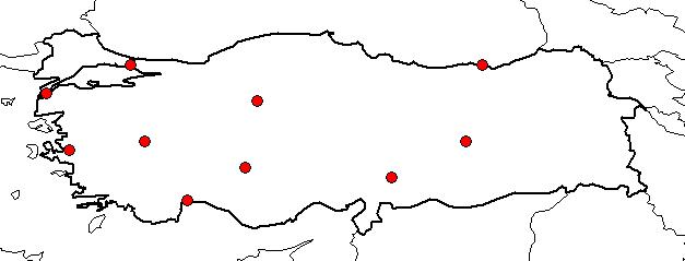 | Based on Vilayets: | İSTANBUL, ANKARA, ANTALYA, ÇANAKKALE, ELAZIĞ, İZMİR, KONYA, KAHRAMANMARAŞ, TRABZON, UŞAK|