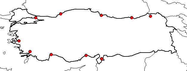 | Based on Vilayets: | İSTANBUL, ZONGULDAK, ANTALYA, ARTVİN, HATAY, İÇEL, İZMİR, MUĞLA, SAMSUN, TRABZON|