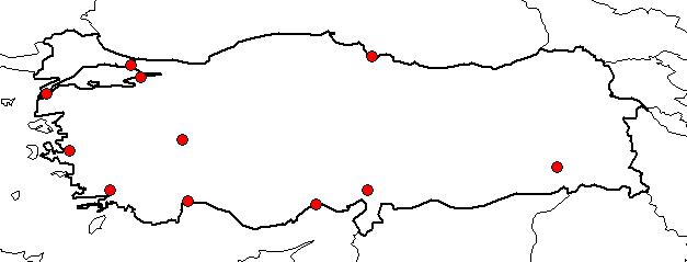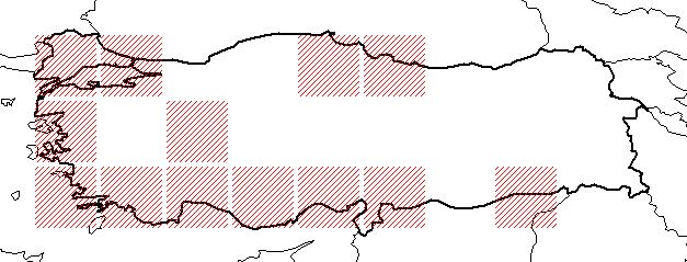 Türkiye dağılımı : KB. Türkiye, B., G., O. ve D. (G. uç) Anadolu