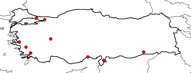Türkiye dağılımı : Trakya, B., G. ve D. (G. uç) Anadolu