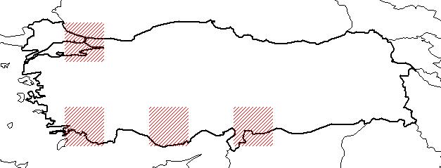 Türkiye dağılımı : KB. Türkiye, B. ve G. Anadolu