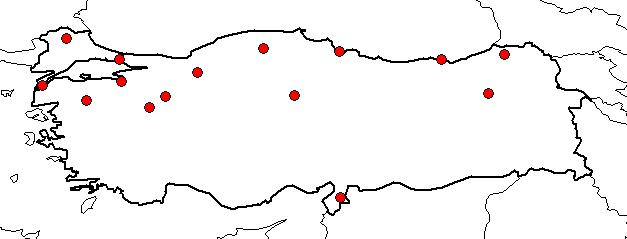 Türkiye dağılımı : K., KB. Türkiye, G. ve O. Anadolu
