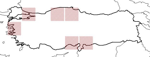 Türkiye dağılımı : Trakya, Dış Anadolu